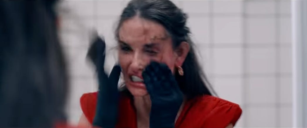 REVISION: People pointed out that they saw a stronger theme of addiction and lack of self-control in this film, rather than a cautionary message about curbing your greed. Although I also identified her lack of self-control as a major force behind Elisabeth’s bad decisions, I was perhaps a little biased in my judgment of perceiving this lack of self-control as a weak will that bends to her lofty and misguided goals, rather than purely a feeling that she can’t control. As I mention at the bottom of this section, I struggle a lot with greed and have repeatedly gone through this cycle, similar to a hedonistic treadmill, where I always recalibrate myself to a steady state of dissatisfaction after achieving any goal. I attribute this inability to feel secure and confident in one’s present state to my insatiable greed. That’s why when I watched The Substance, I saw past the simple concept of self-control, because in my personal experience, lacking self-control is a symptom rather than a root cause.